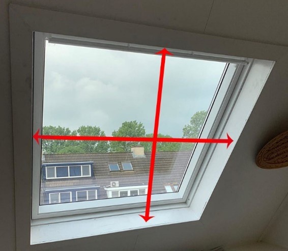 Meet de exacte afmetingen van de opening en voeg hier minimaal 52 mm (26 mm aan elke zijde) toe in zowel de breedte als de hoogte. Dit zorgt ervoor dat er een vrije doorkijk behouden blijft en het raam nog steeds volledig geopend kan worden.